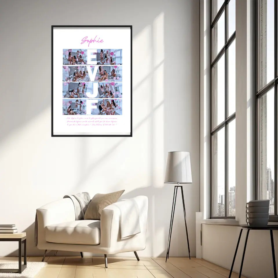 Affiche photo personnalisé : idéal pour sublimer votre décoration ! Donnez vie à vos murs avec des affiches photo personnalisées. Elles représentent votre essence, vos passions. L’affiche personnalisée photo EVJF est le choix parfait pour immortaliser votre journée spéciale. Elle crée une atmosphère chaleureuse...- From 9,99 €