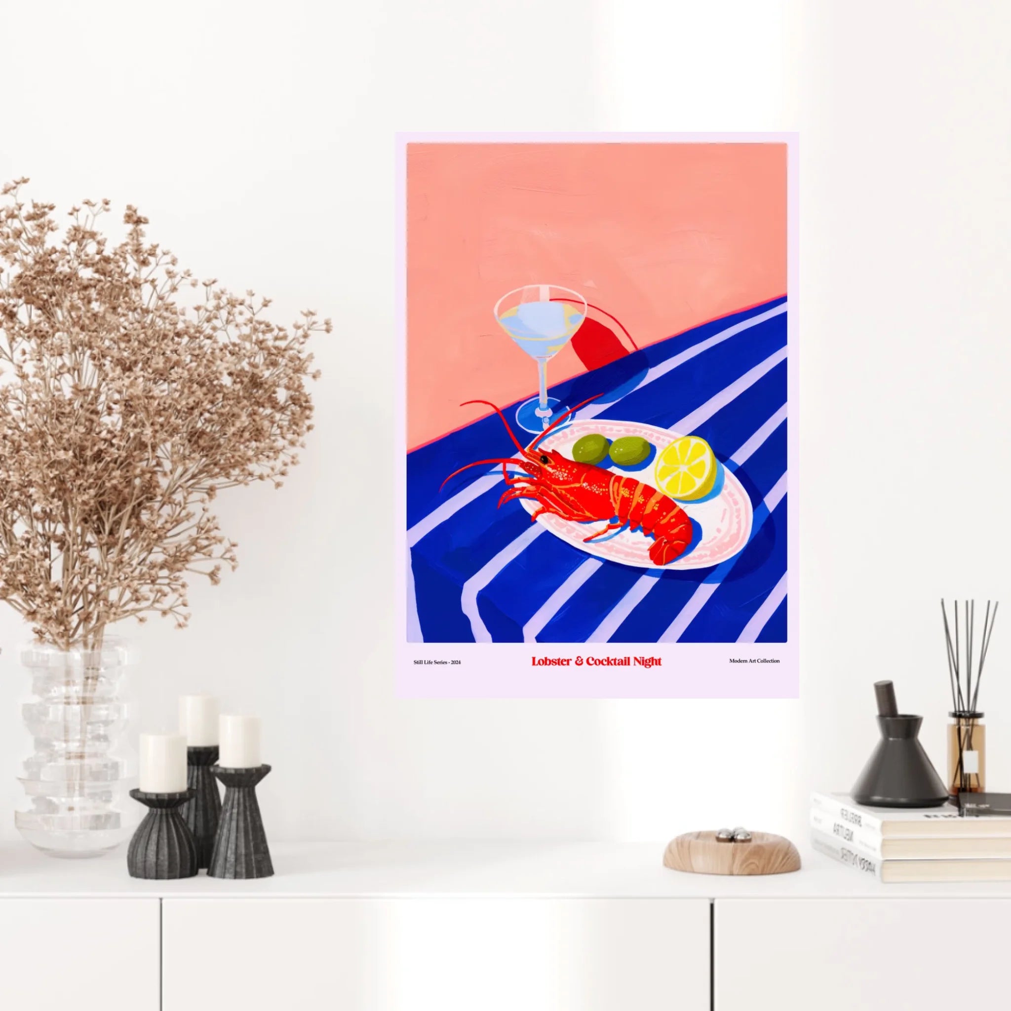 Ajoutez une touche de raffinement et de convivialité à votre espace avec l'affiche "Lobster And Cocktail Night". Parfaite pour les amateurs de cuisine gastronomique et de soirées élégantes, cette création artistique capture l'esprit d'une délicieuse soirée alliant homard et cocktails. Que ce soit pour embellir votre cuisine, salle à manger, ou bar à la maison, cette pièce saura séduire vos convives et rehausser l’ambiance.