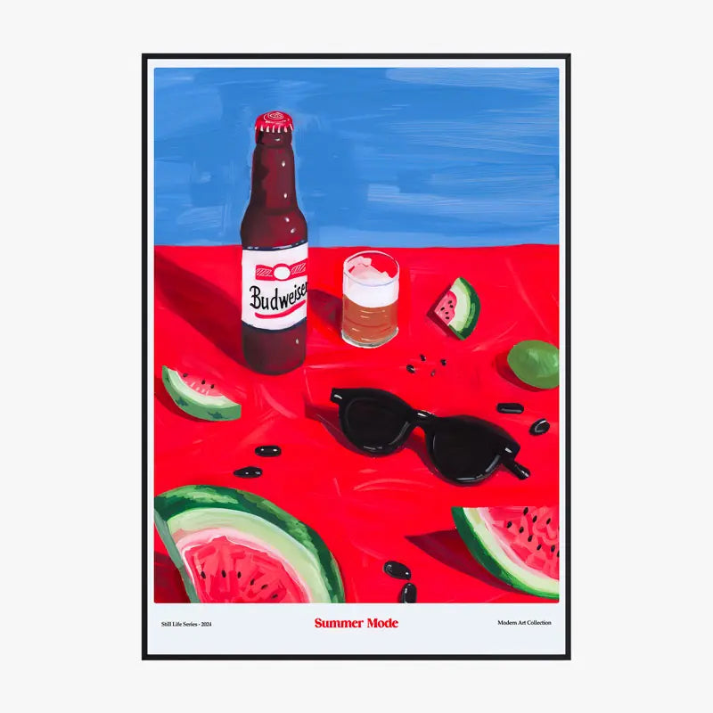 Plongez dans l’esprit des journées ensoleillées et des saveurs estivales avec l’affiche "Summer Mode". Conçue pour insuffler une ambiance légère et rafraîchissante, cette pièce unique transforme votre cuisine ou espace de vie en une ode à l’été. Parfaite pour les amateurs de design moderne et minimaliste, elle marie esthétisme et praticité.