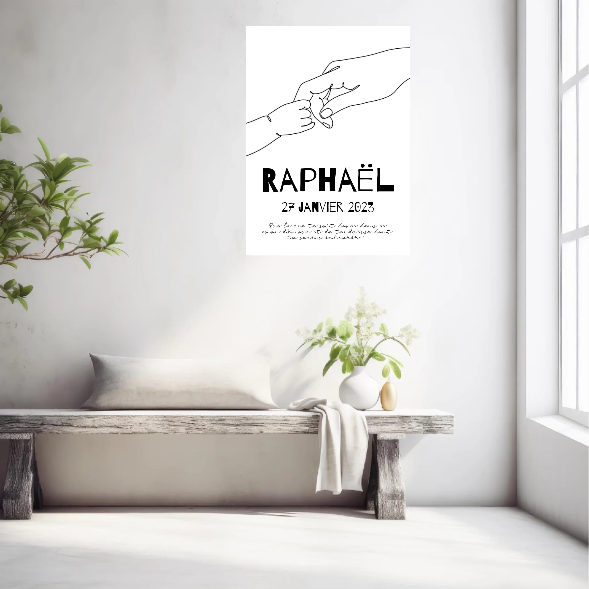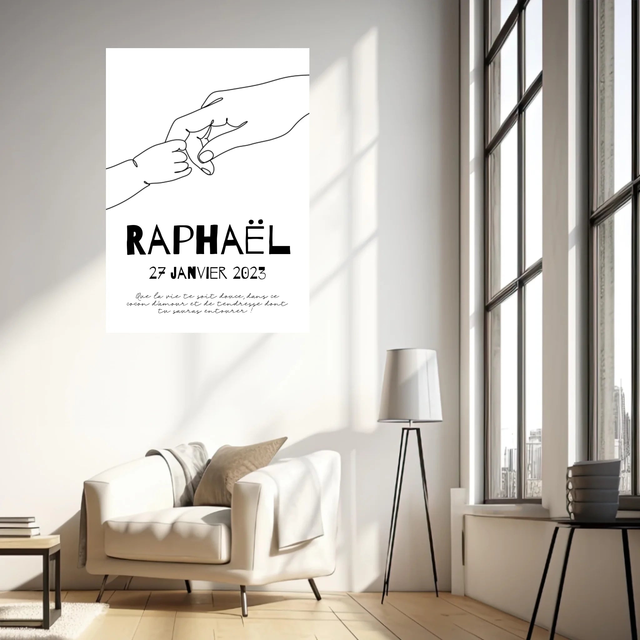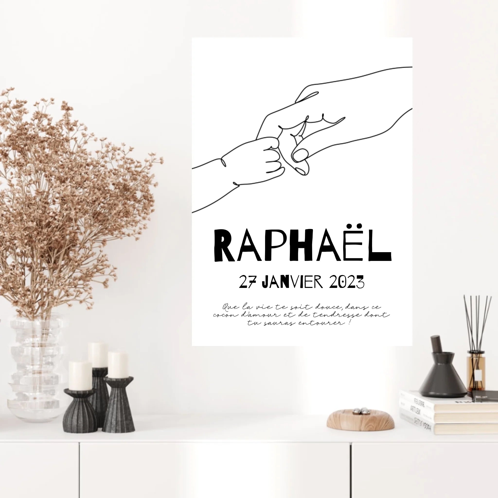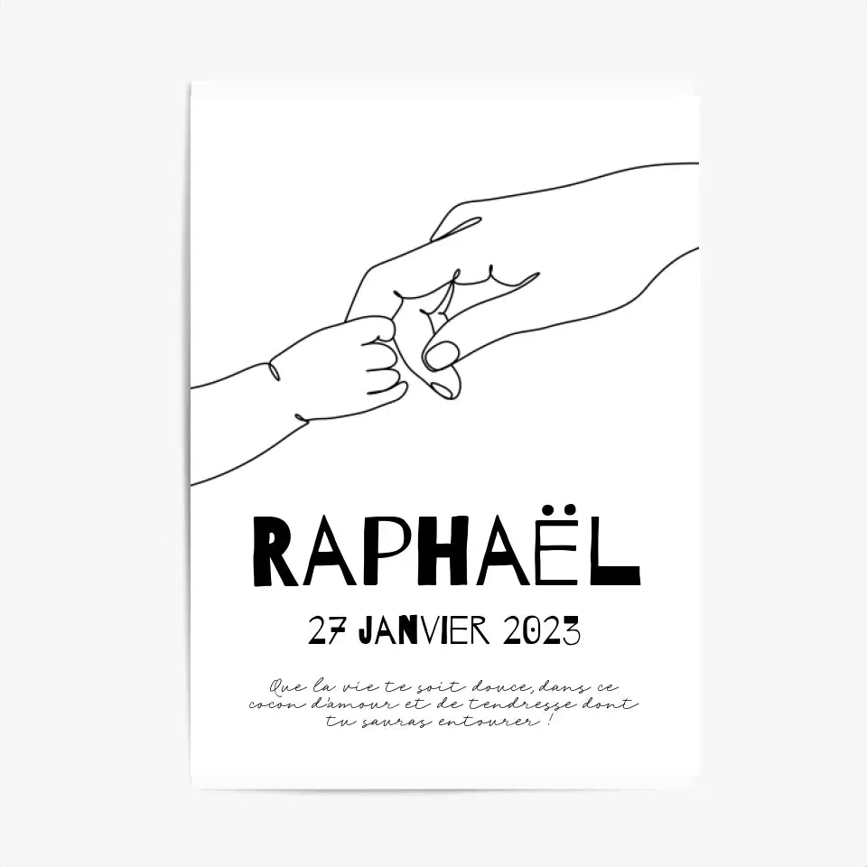 Ce tableau compte aussi une image de deux mains : celle d’une maman et de son enfant. Le tout est fait avec des traits fins et en couleur noir et blanc. C’est l’art moderne dans toute sa splendeur. Et, cette toile noire sur un fond blanc est aussi un accessoire de décoration passe-partout. Vous pouvez l’utiliser dans la chambre de votre princesse ou de votre petit prince. Ce sera le cas, peu importe la thématique de la décoration.
