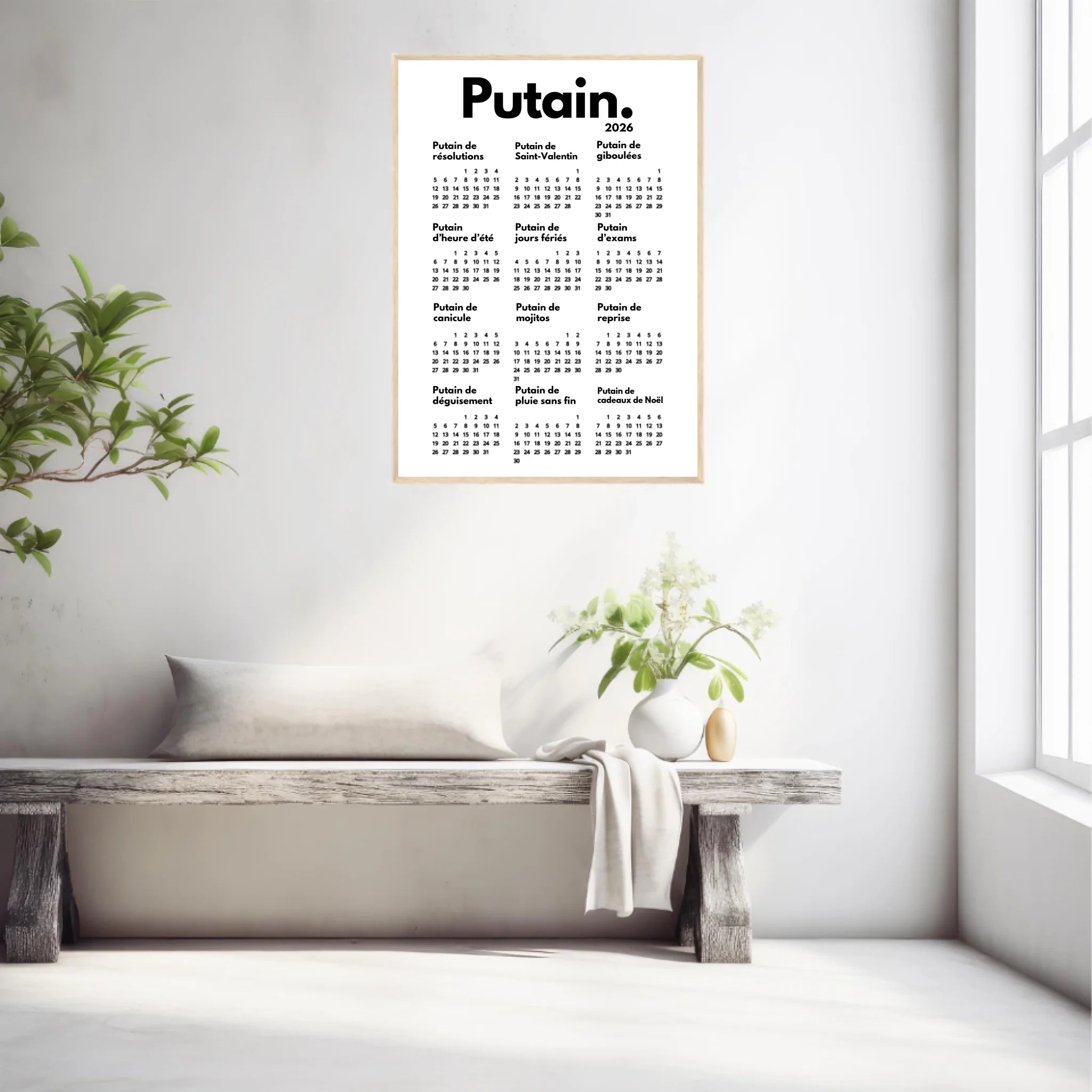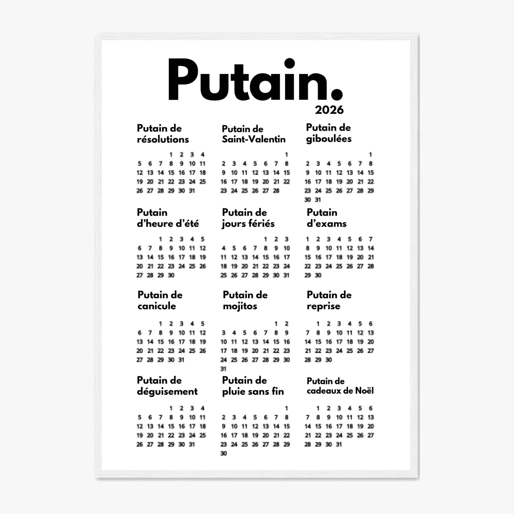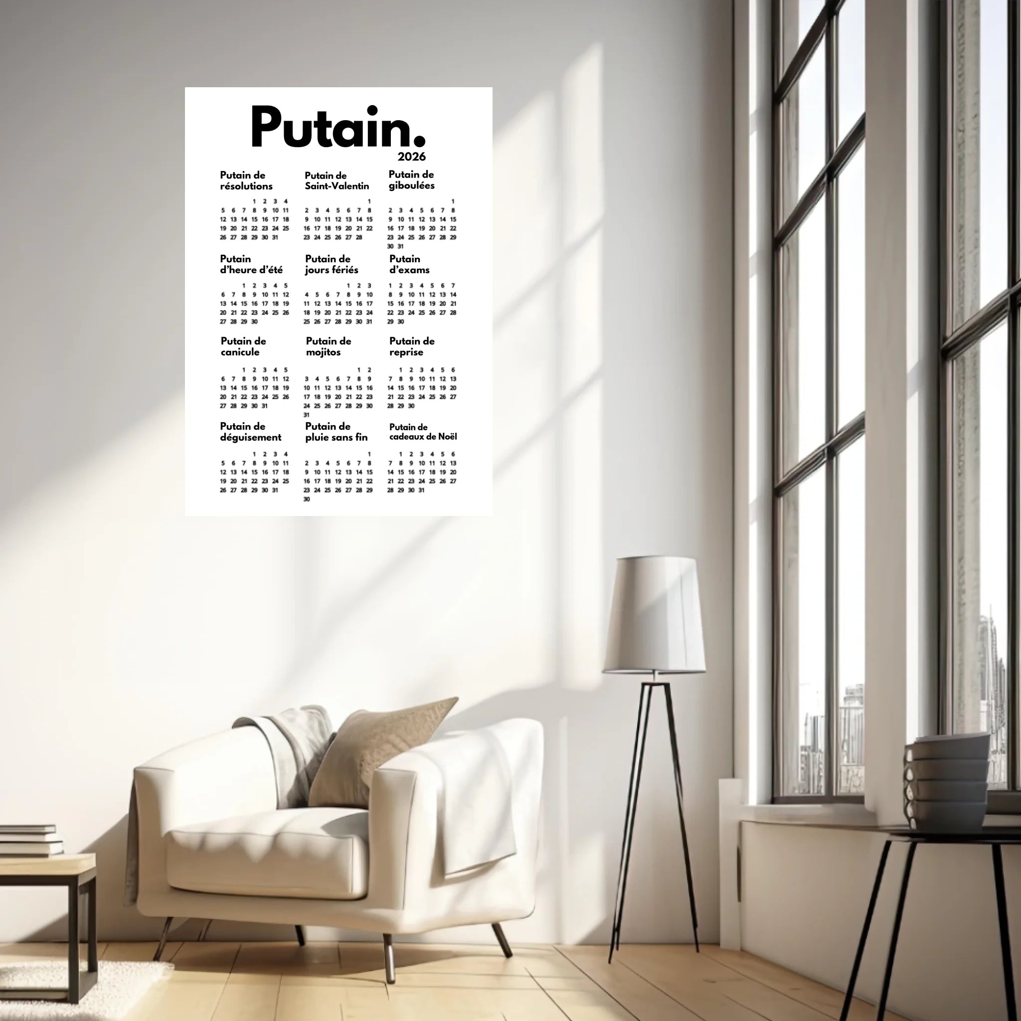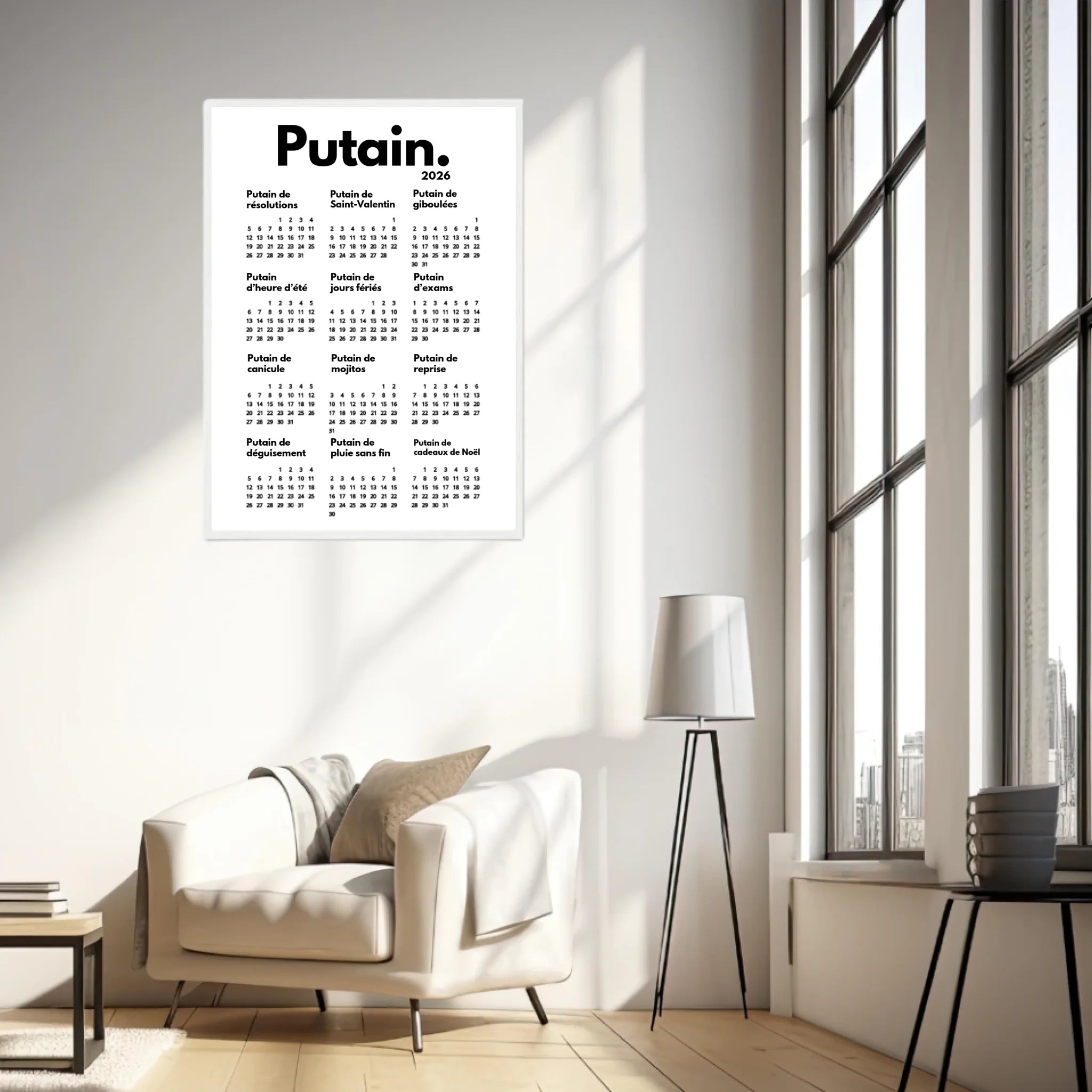 Qu’il soit accroché dans votre salon, votre bureau ou votre cuisine, ce calendrier personnalisé est bien plus qu’un outil pratique : c’est un clin d’œil drôle et esthétique à la vie quotidienne. Commandez dès maintenant votre Affiche Personnalisée Calendrier Putain 2026 et faites de chaque mois un moment à sourire plutôt qu’à râler 😉.