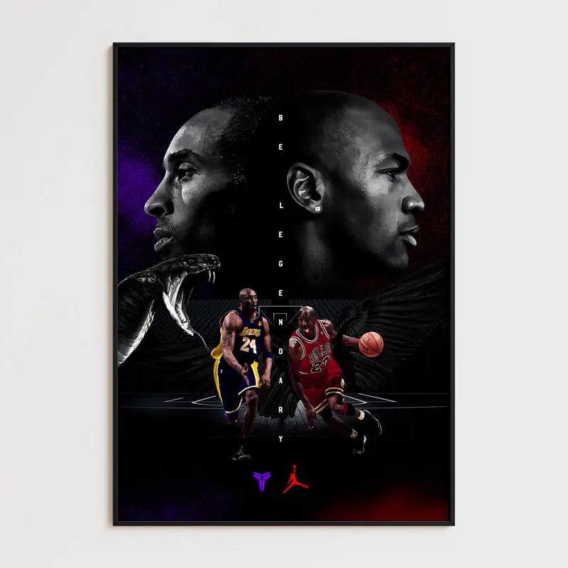 Plongez dans l'univers légendaire du basket-ball avec notre magnifique Poster Pop Art "Be Legendary". Célébrant les icônes du sport, Kobe Bryant et Michael Jordan, ce tableau est un véritable chef-d'œuvre qui ravira les fans des Lakers de Los Angeles et des Chicago Bulls. Avec ses couleurs vives et son style unique, cette affiche toile apportera une touche artistique et audacieuse à n'importe quelle pièce. Décorez votre espace avec fierté et montrez votre passion pour le basket-ball grâce à se poster incontournable. Soyez légendaire, comme Kobe et Michael !