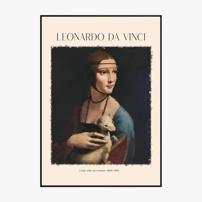 La célèbre œuvre de Léonard de Vinci, Lady with an Ermine (La Dame à l'hermine), est l'un des portraits les plus emblématiques du génie italien. Réalisée vers 1489-1490, cette peinture incarne le raffinement et le talent de Vinci, tout en capturant un moment d'une grande intensité émotionnelle. Cette affiche ou tableau moderne vous permet de plonger dans l'univers de la Renaissance, apportant une touche de sophistication et d’histoire à votre intérieur.
