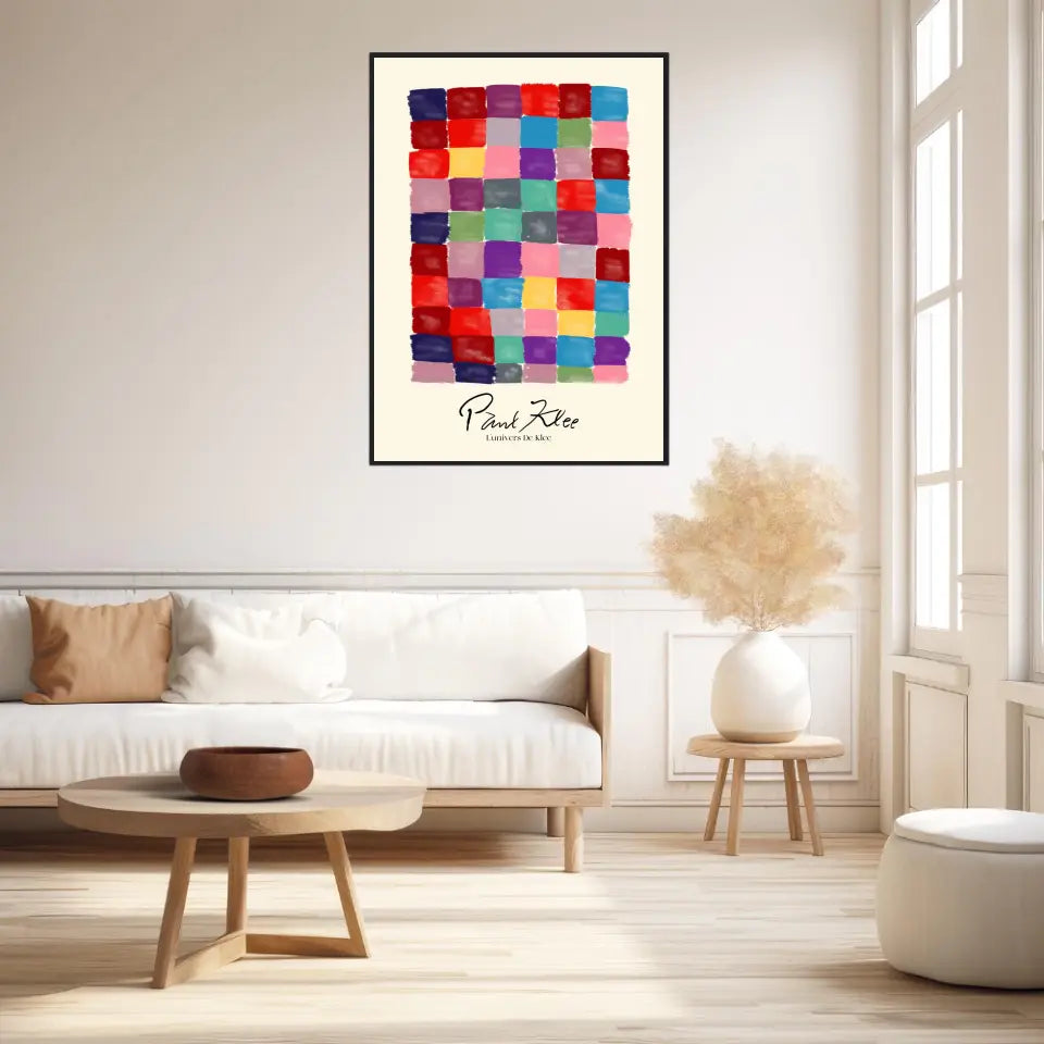 L'univers de Klee illustre l'équilibre parfait entre forme et fonction. Chaque case colorée est une fenêtre sur l'âme de l'artiste. Laissez ce tableau art contemporain devenir le reflet de votre propre univers. Il ne manquera pas d'inspirer conversations et admirations. Ce n'est pas qu'une œuvre, l’affiche Paul Klee est une conversation silencieuse. Chaque observateur trouve son récit dans L'univers de Klee. Les motifs abstraits invitent à l'introspection. La toile devient le miroir de vos pensées, changeant avec l'humeur et la lumière. Accueillez ce tableau et offrez-vous une source inépuisable de nouvelles perspectives. C'est une invitation au voyage intérieur, unique à chaque regard.